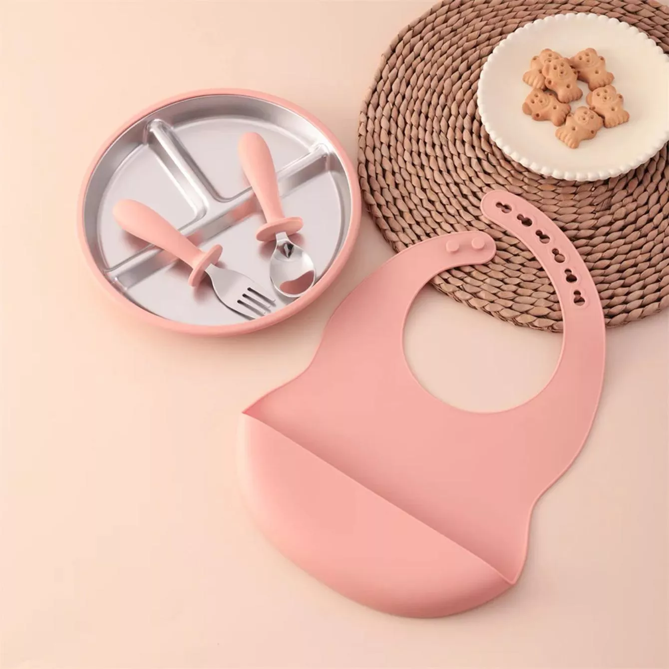 4PCS Baby Feeding Set Stainless Steel & Silicone Weaning Tableware BPA Free